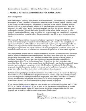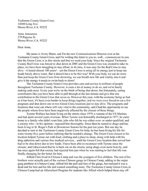 executive summary: a personalized solicitation letter from the (fictional) Communications Director of the (fictional) Tuolumne County Green Cross to a potential contributor