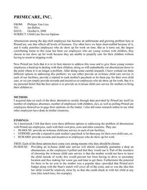 executive summary: a report covering the possible routes this (fictional) company can go in their attempt to reduce absenteeism among their staff